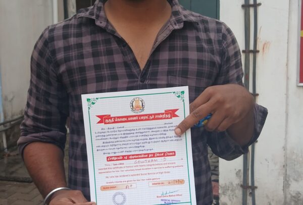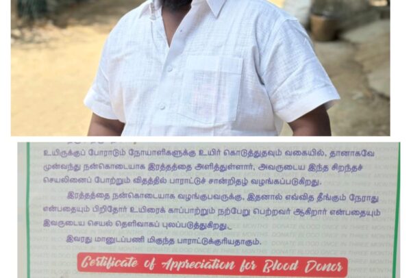 சொந்தம் டிரஸ்ட் சார்பாக அவசர இரத்ததானம் வழங்கப்பட்டது.