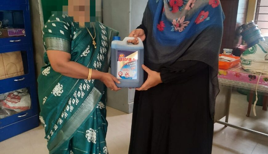 மேல்நிலைப்பள்ளின் கழிவறை பயன்படுத்துவதற்காக உபயோக பொருட்கள் வழங்கப்பட்டது 5,லிட்டர் ஹார்பிக்.