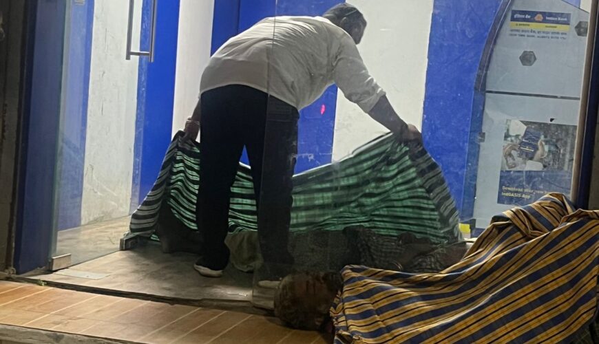 முதல் கட்டமாக சாலையோரம் வகிக்கக்கூடிய மக்களுக்கு பெட்ஷீட் போர்த்திவிடப்பட்டது