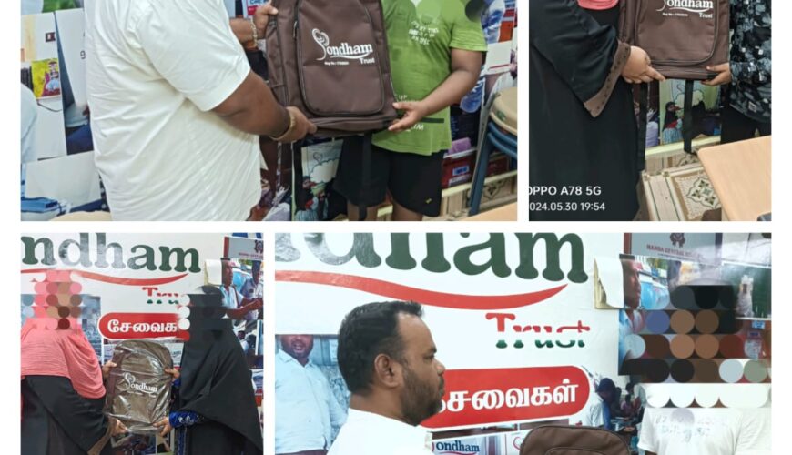 இறைவனின் திருப்பெயரால். சொந்தம் டிரஸ்ட் சார்பாக. 30.5.2024 வியாழக்கிழமை இன்று இரண்டாம் கட்டமாக ஆறாம் வகுப்பு முதல் பத்தாம் வகுப்பு வரை படிக்கக்கூடிய ஏழை எளிய மாணவர்களுக்கு அன்பளிப்பாக பள்ளிக்கூடம் செல்வதற்கு ஸ்கூல் பேக் வழங்கப்பட்டது. புகழ் அனைத்தும் இறைவனுக்கே. இதற்காக பொருளாதார உதவி செய்த நல் உள்ளங்களுக்கும் அவர்களது குடும்பத்தினர்களுக்கும் ஏக இறைவனுடைய சாந்தியும் சமாதானமும் அவனுடைய வற்றாத கருணையும் என்றென்றும் நின்று நிலவட்டும் என்று பிரார்த்தனை செய்கின்றோம். குறிப்பு. இப்பதிவின் நோக்கம் நீங்களும் இது போன்ற சமுதாயப் பணிகளில் ஈடுபட வேண்டும் என்ற நல் எண்ணத்தில் மட்டுமே. மேலும் உங்களது நன்கொடைகளை தாராளமாக வாரி வழங்க கீழ்காணும் உள்ள வங்கி கணக்கு எண்ணில் செலுத்தவும். YES BANK Bank name : Yes Bank Account name : Sondham Account number : 118688700000041 IFSC code : YESB0001186 Branch name : Valasaravakkam Chennai